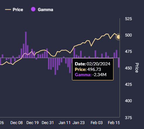 We are in negative gamma territory after today’s close which makes the market more susceptible to further drops. In a negative gamma situation, market makers are forced to sell more of the underlying asset to hedge their positions, potentially accelerating the downward movement of the market. This can create a feedback loop that drives prices lower, contributing to bearish sentiment.