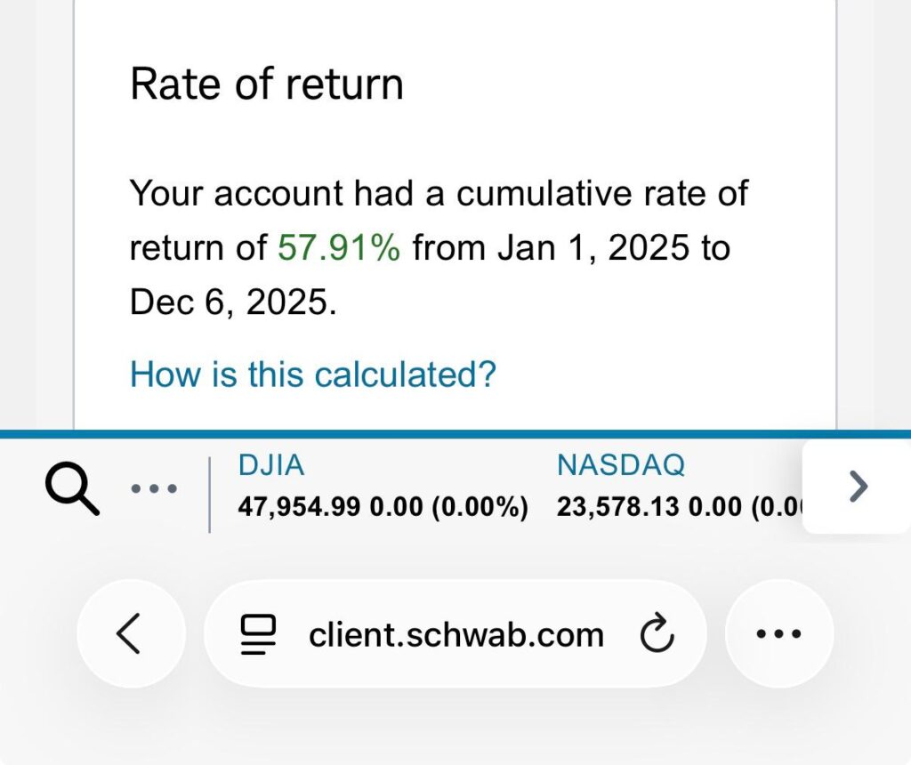 Schwab Portfolio (+75.84% as of Dec. 6 2025) (A bit smaller size than IBKR portfolio):